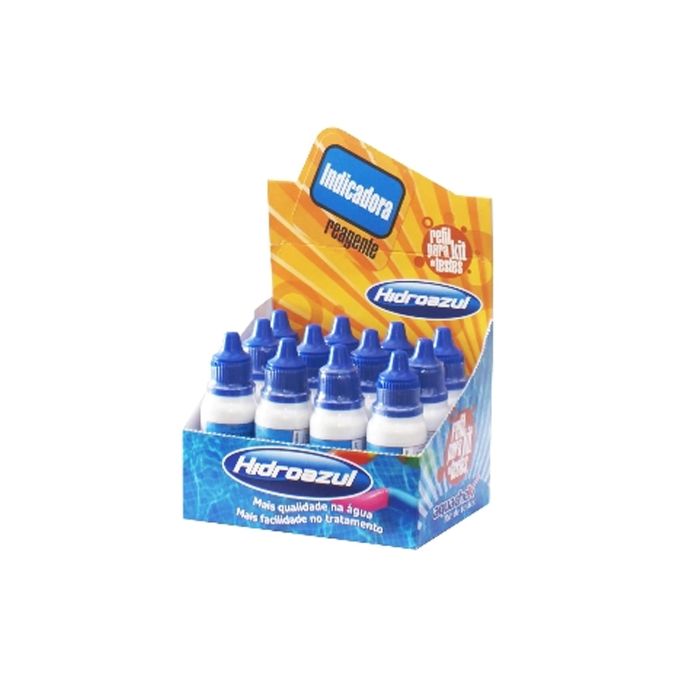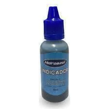 2- Adicione 3 gotas da Solução 2 (indicador) e agite para igualar a cor azul esverdeada formada.